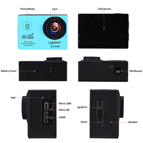 Título: Cámara Deportiva Resistente al Agua con Wi-Fi Full-HD 1080P 12MP Cámara Acción 2"LCD 170 Grados Gran Ángulo Sumergible 30m con 2 Baterías 900mAh y Accesorios Multiples para Deportes al Aire Libre (Azul)